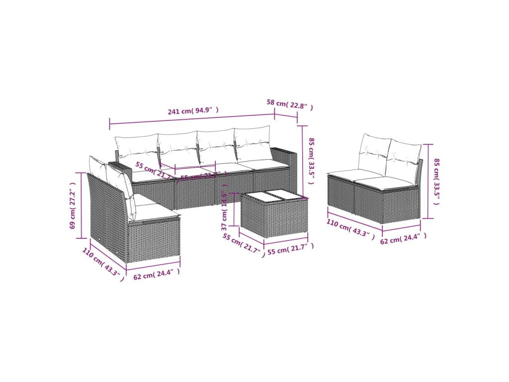 Tato zahradní sedací souprava je dokonalým doplňkem vaší zahrady, terasy nebo dvorku a poskytne vám pohodlné a příjemné místo, kde si můžete povídat s rodinou a přáteli nebo jen tak odpočívat a užívat si pobyt venku.