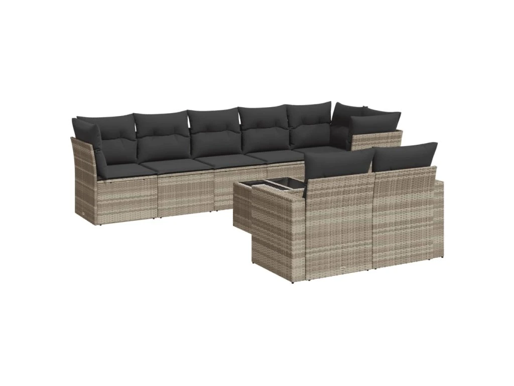 9dílná zahradní sedací souprava a podušky světle šedá polyratan 3219222