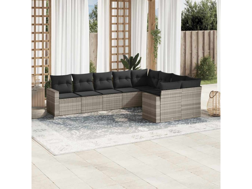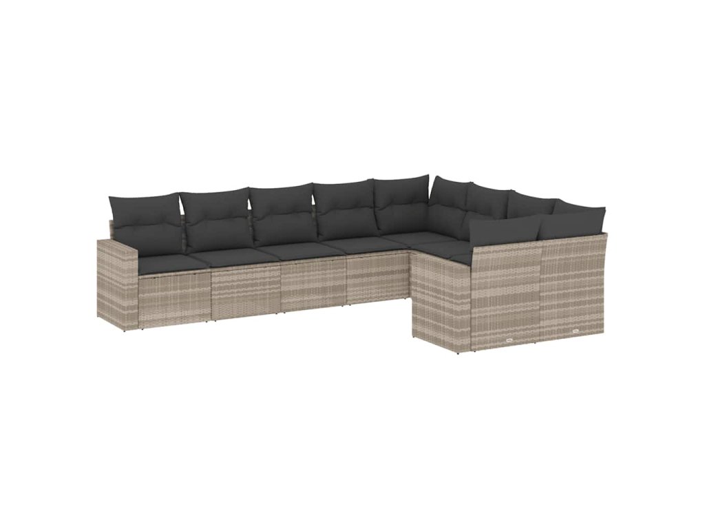 9dílná zahradní sedací souprava a podušky světle šedá polyratan 3219432