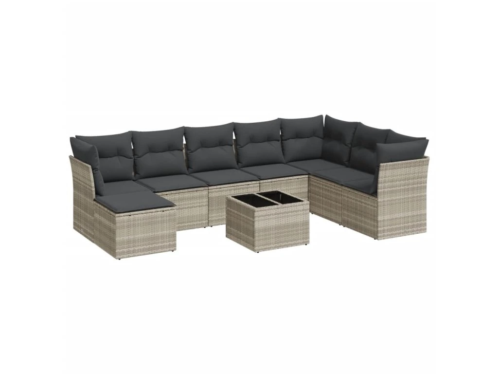 9dílná zahradní sedací souprava a podušky světle šedá polyratan 3249901