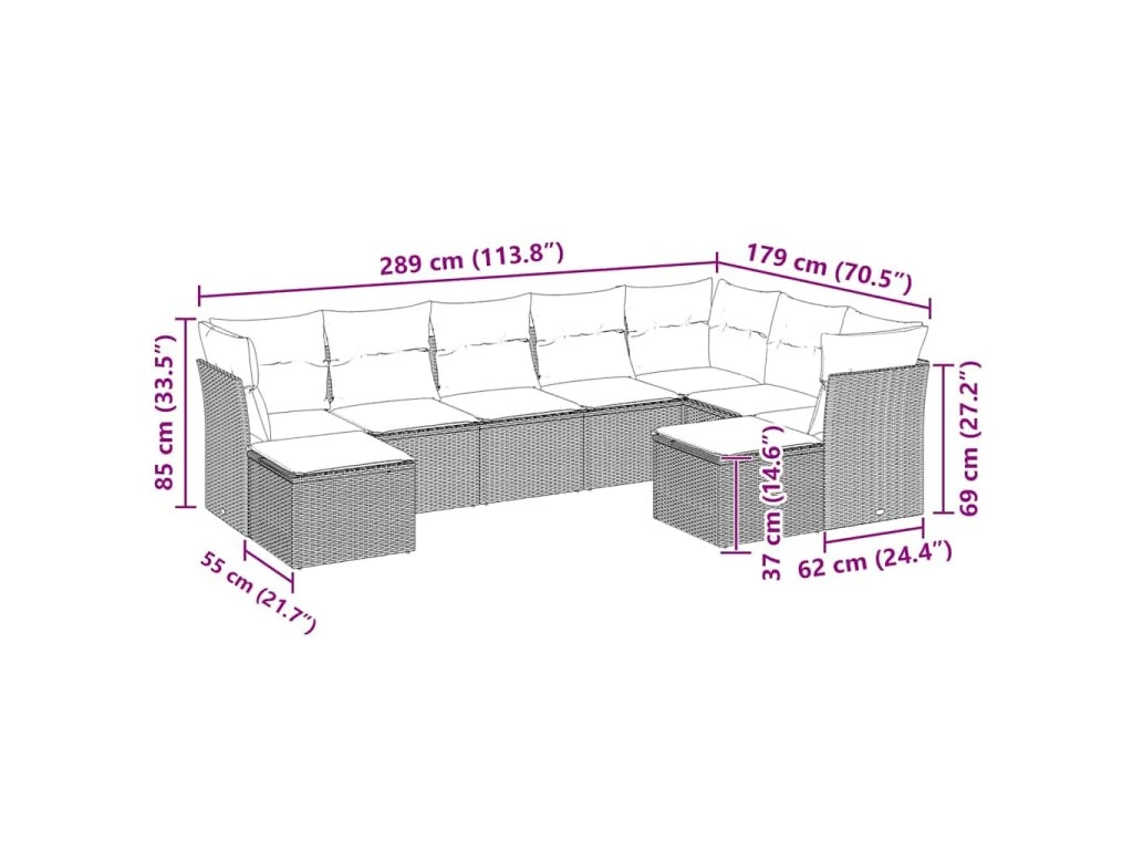 Tato zahradní sedací souprava je dokonalým doplňkem vaší zahrady, terasy nebo dvorku a poskytne vám pohodlné a příjemné místo, kde si můžete povídat s rodinou a přáteli nebo jen tak odpočívat a užívat si pobyt venku.