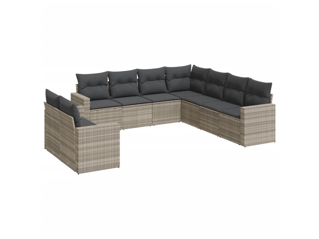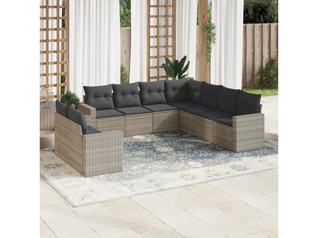 9dílná zahradní sedací souprava a podušky světle šedá polyratan 3251489