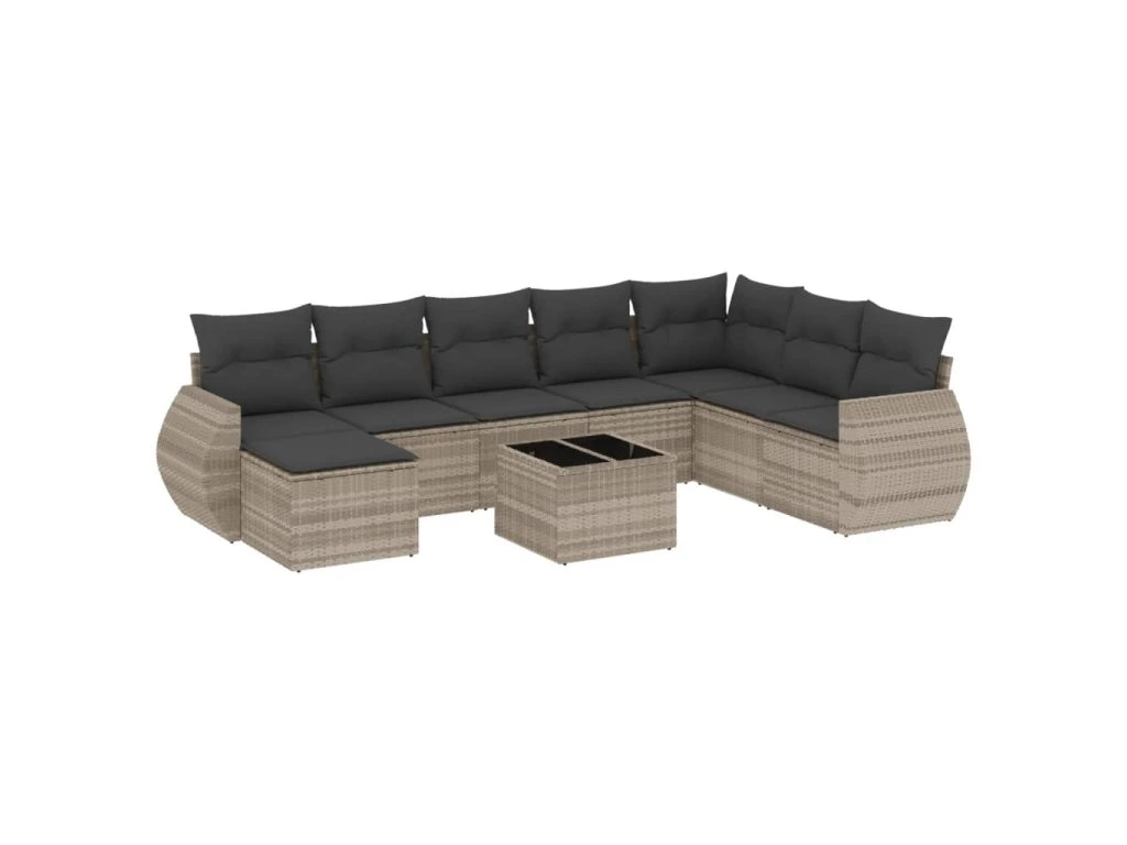 9dílná zahradní sedací souprava a podušky světle šedá polyratan 3254109
