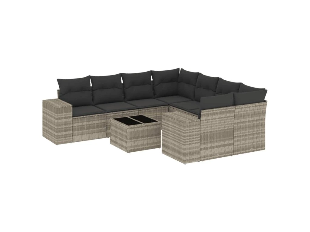 9dílná zahradní sedací souprava a podušky světle šedá polyratan 3254699