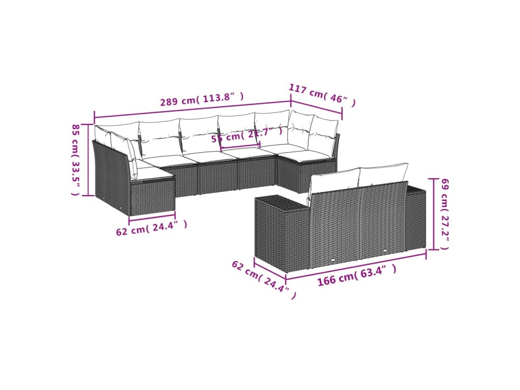 9dílná zahradní sedací souprava a podušky světle šedá polyratan 3255359