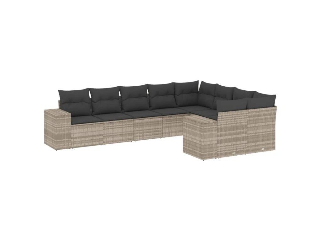 9dílná zahradní sedací souprava a podušky světle šedá polyratan 3255379