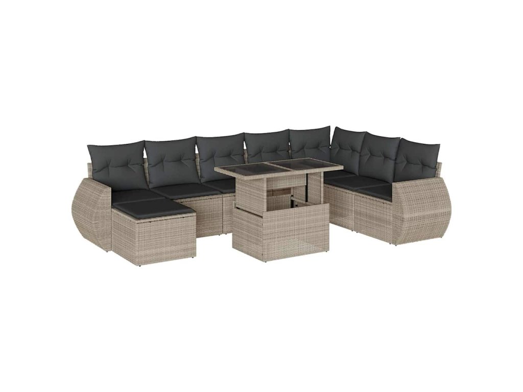 9dílná zahradní sedací souprava a podušky světle šedá polyratan 3268732
