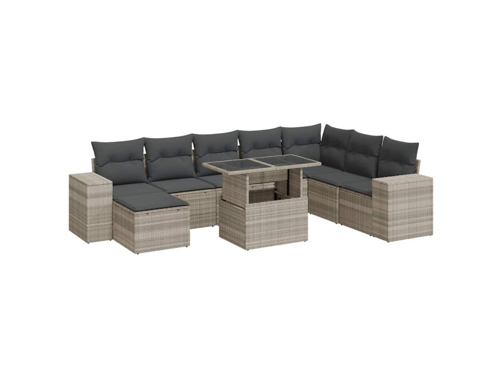 9dílná zahradní sedací souprava a podušky světle šedá polyratan 3326853