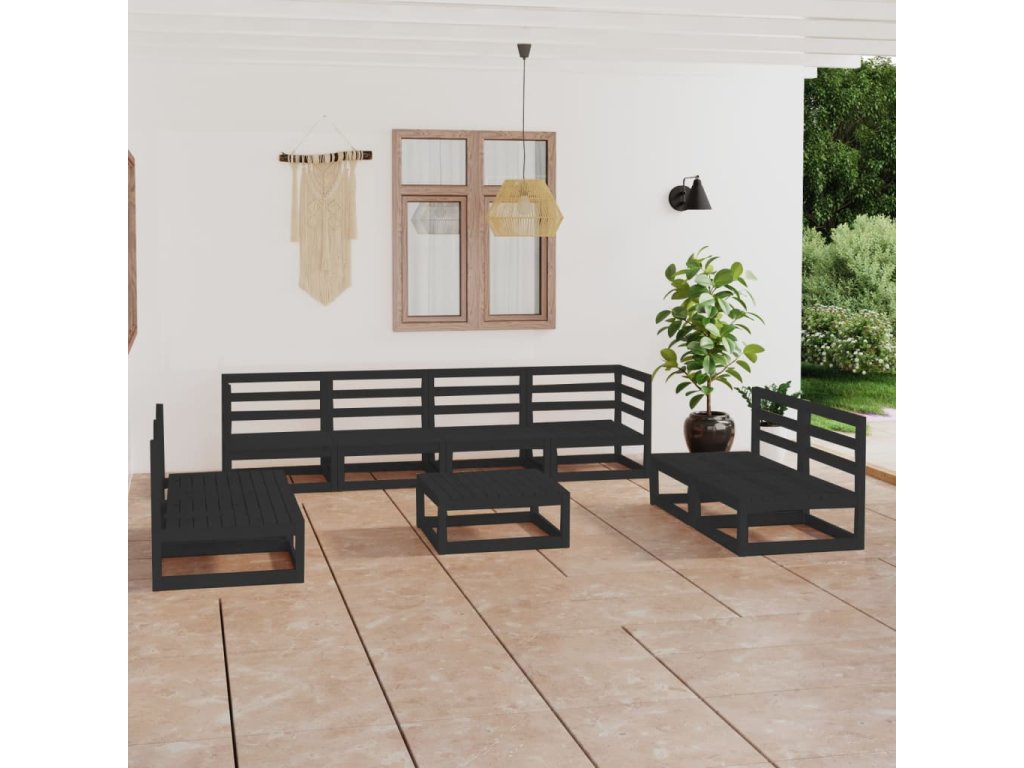 9dílná zahradní sedací souprava černá masivní borovice 3075438