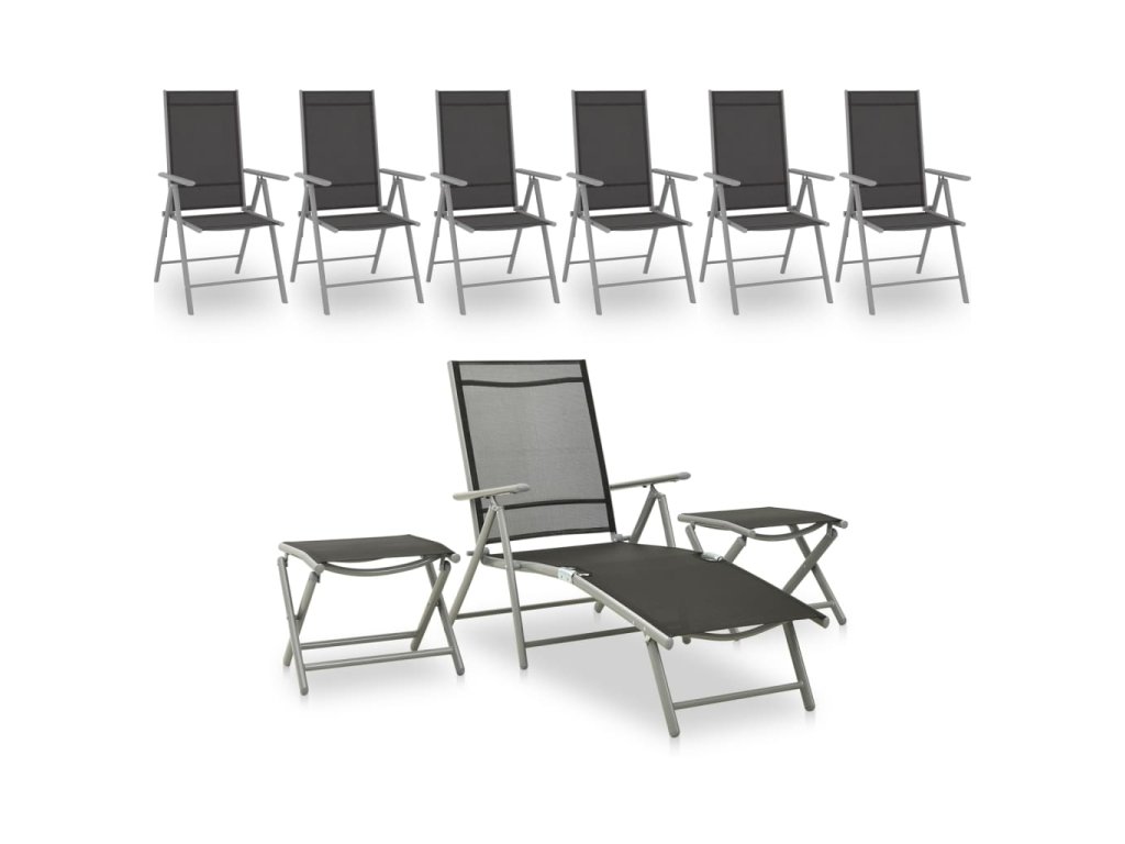 Tato sada zahradního nábytku je vyrobena z hliníkových rámů, je tedy lehká a snadno přenosná. Sedadla z prodyšného textilenu jsou mimořádně pohodlná. Opěradlo lze nastavit do 7 různých poloh, takže si vždy najdete tu nejpohodlnější pozici. Podnožky nabízí skvělý odpočinek pro nohy a mohou také sloužit jako sedátka pro děti. Když je právě nepoužíváte, dají se snadno složit, a tím ušetříte místo.