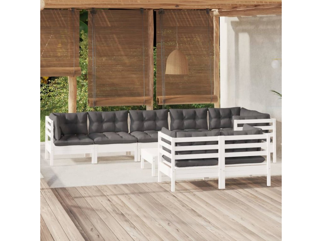 9dílná zahradní sedací souprava podušky bílá masivní borovice 3096509