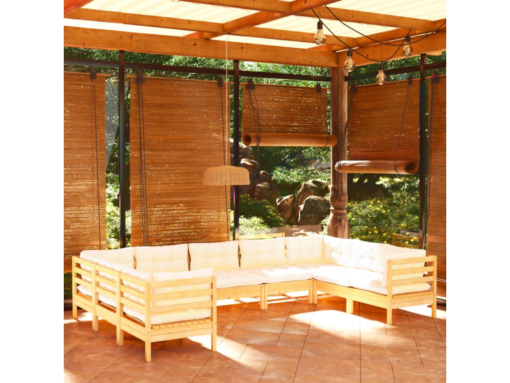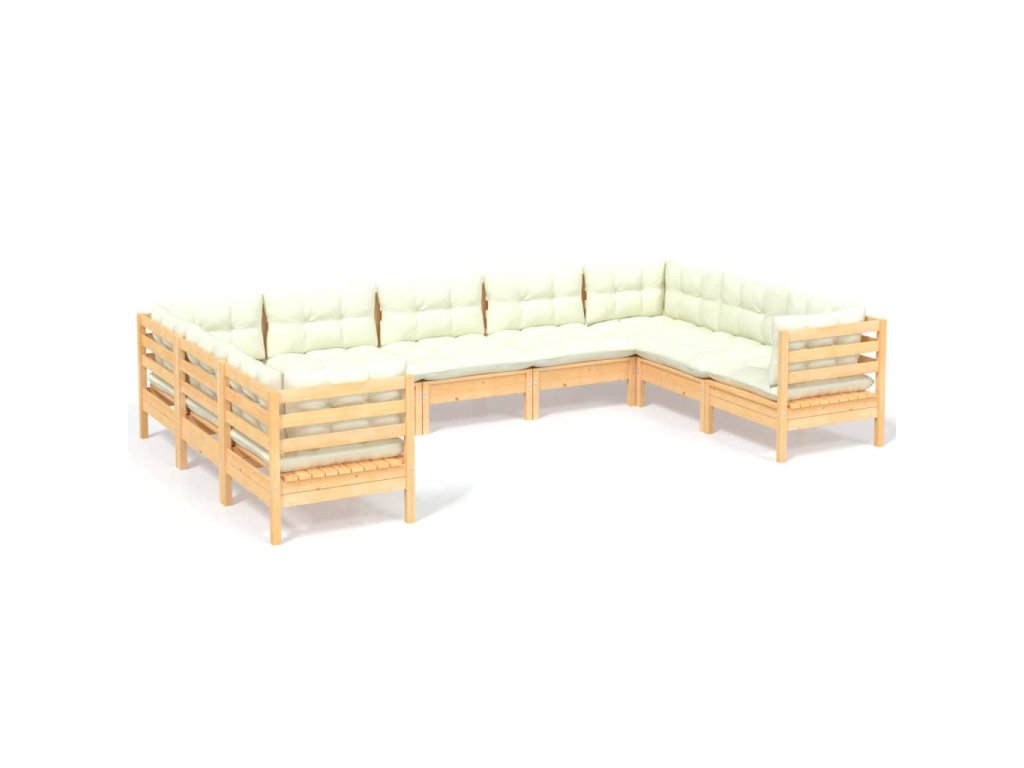 9dílná zahradní sedací souprava s krémovými poduškami borovice 3097319