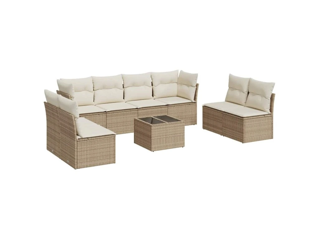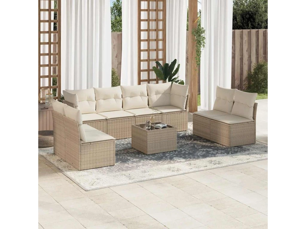 9dílná zahradní sedací souprava s poduškami béžová polyratan 3217458