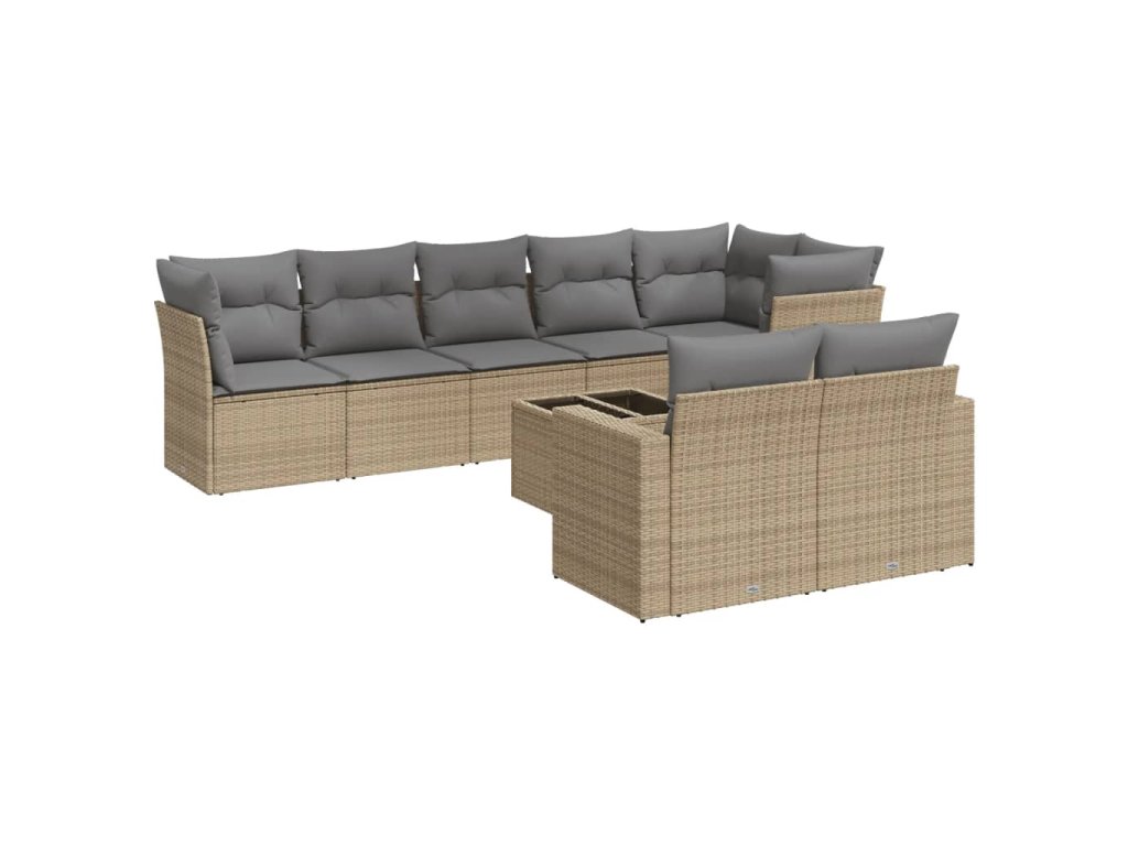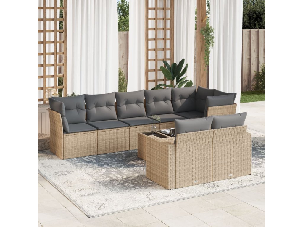 9dílná zahradní sedací souprava s poduškami béžová polyratan 3219219