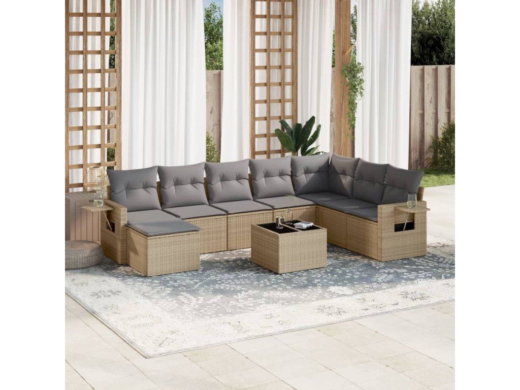 9dílná zahradní sedací souprava s poduškami béžová polyratan 3220568