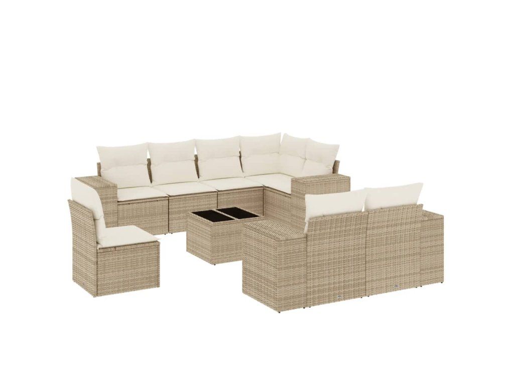 9dílná zahradní sedací souprava s poduškami béžová polyratan 3222847