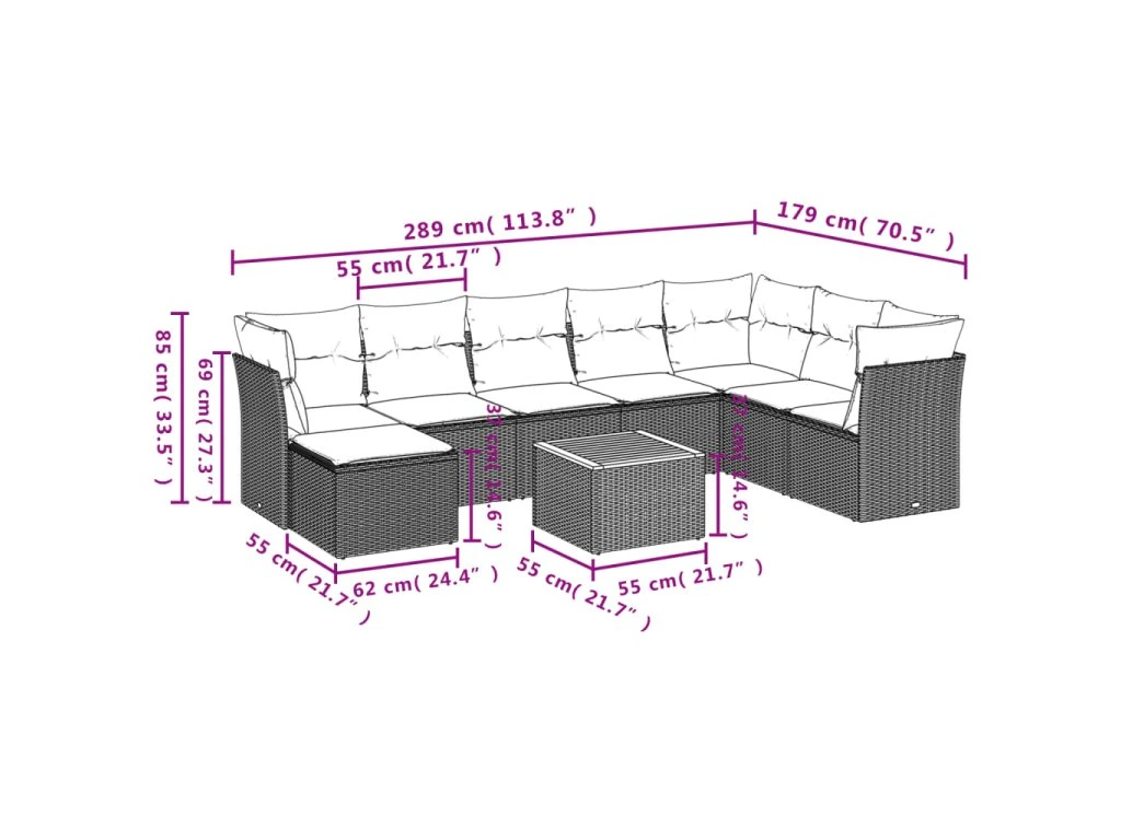 Tato zahradní sedací souprava je dokonalým doplňkem vaší zahrady, terasy nebo dvorku a poskytne vám pohodlné a příjemné místo, kde si můžete povídat s rodinou a přáteli nebo jen tak odpočívat a užívat si pobyt venku.