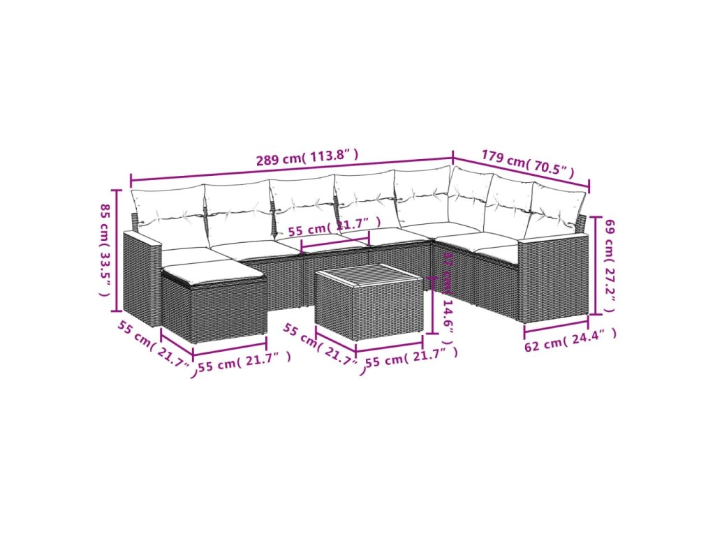 Tato zahradní sedací souprava je dokonalým doplňkem vaší zahrady, terasy nebo dvorku a poskytne vám pohodlné a příjemné místo, kde si můžete povídat s rodinou a přáteli nebo jen tak odpočívat a užívat si pobyt venku.