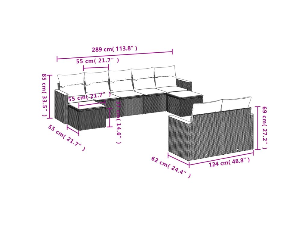 9dílná zahradní sedací souprava s poduškami béžová polyratan 3226401