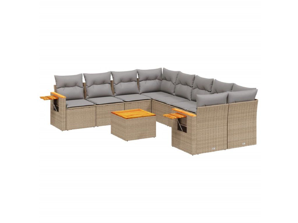 9dílná zahradní sedací souprava s poduškami béžová polyratan 3226668