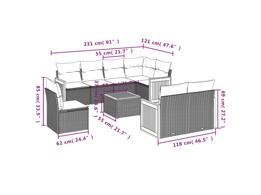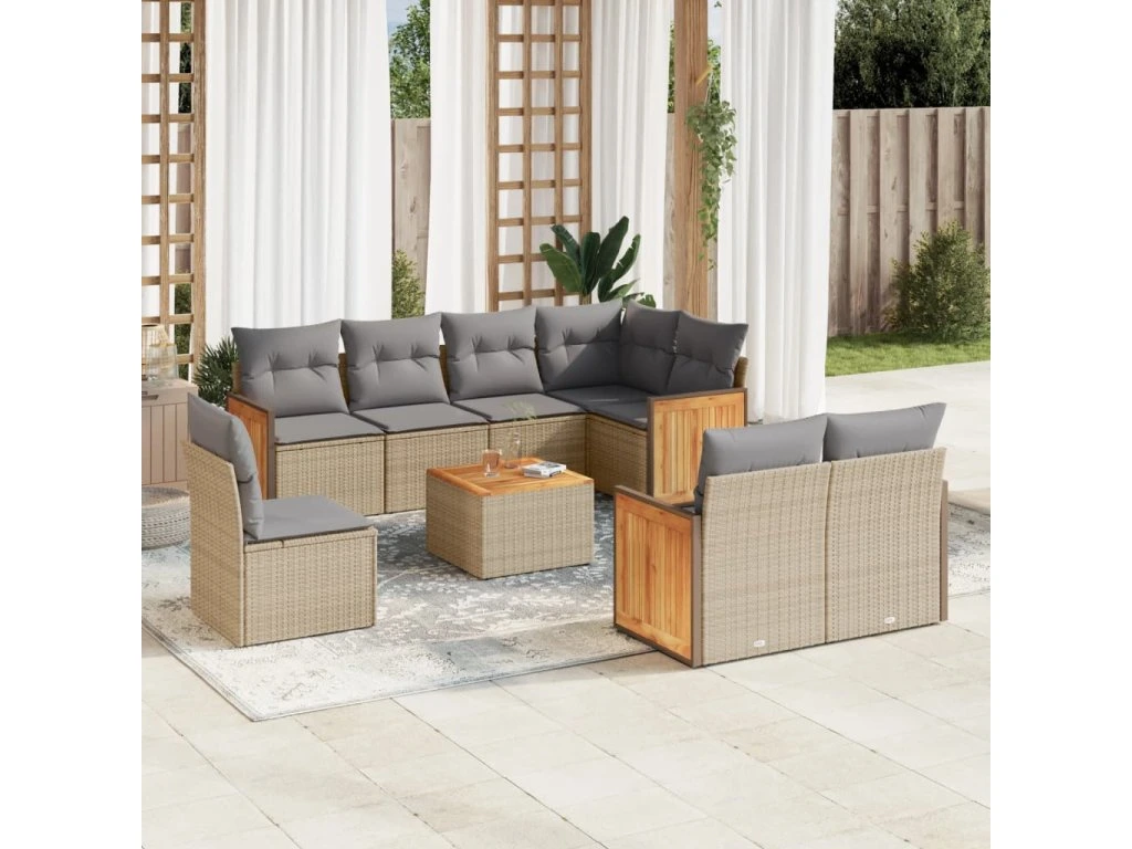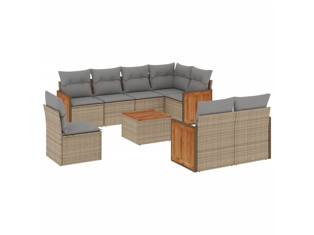 9dílná zahradní sedací souprava s poduškami béžová polyratan 3227851