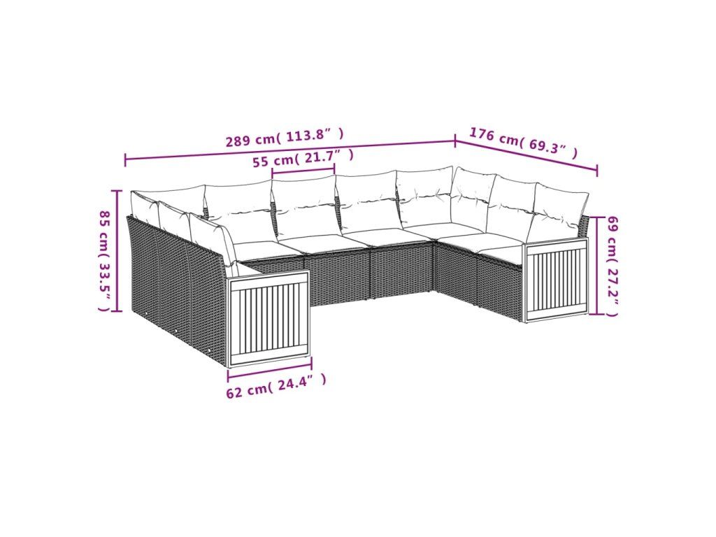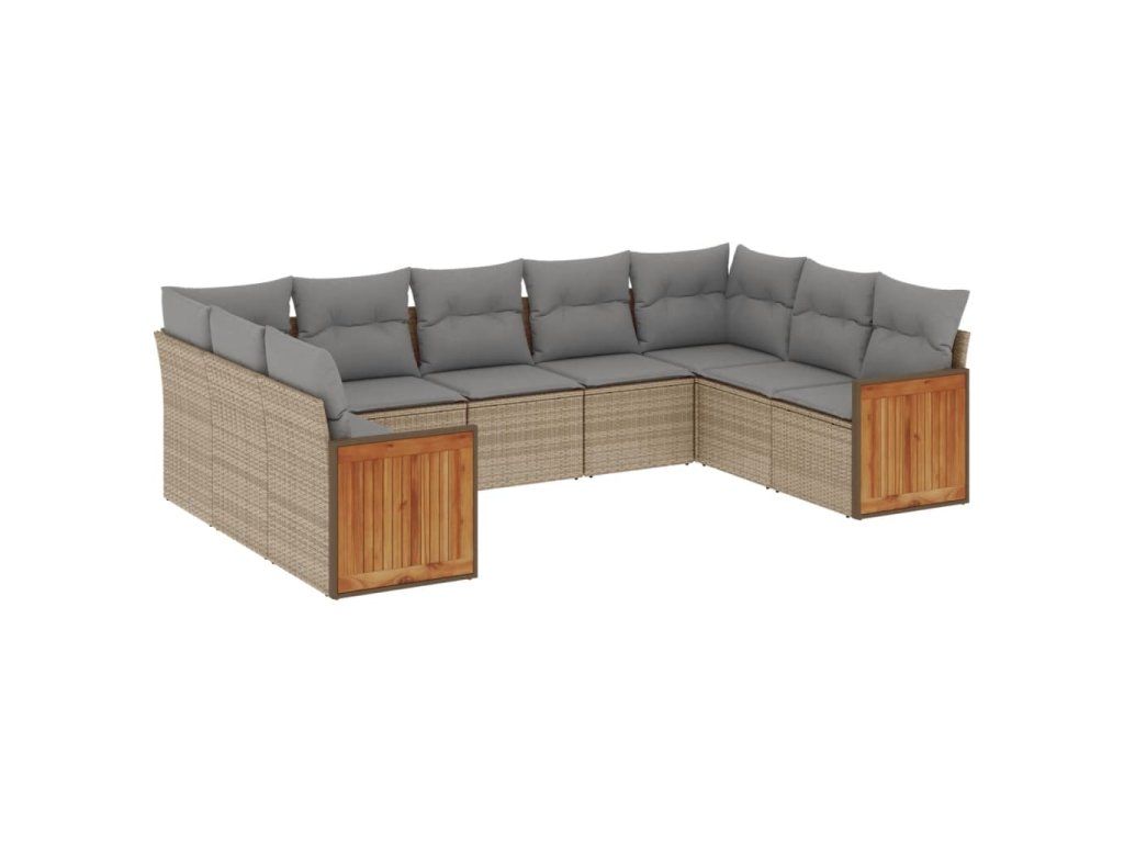 9dílná zahradní sedací souprava s poduškami béžová polyratan 3227956