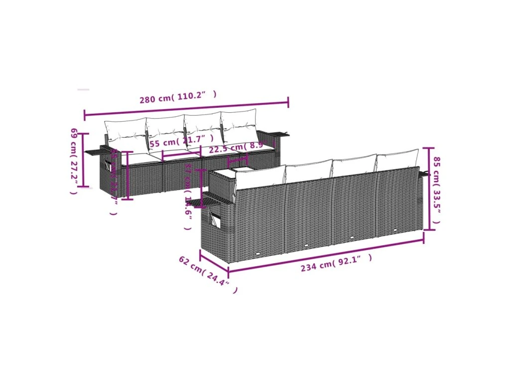 Tato zahradní sedací souprava je dokonalým doplňkem vaší zahrady, terasy nebo dvorku a poskytne vám pohodlné a příjemné místo, kde si můžete povídat s rodinou a přáteli nebo jen tak odpočívat a užívat si pobyt venku.