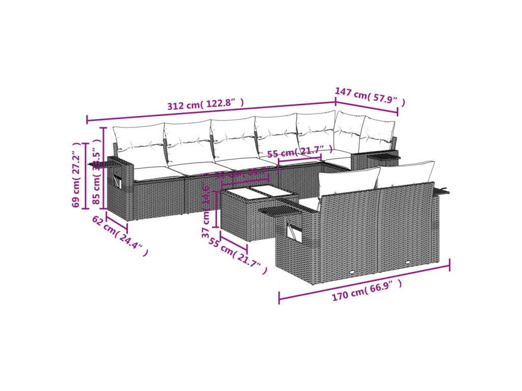 Tato zahradní sedací souprava je dokonalým doplňkem vaší zahrady, terasy nebo dvorku a poskytne vám pohodlné a příjemné místo, kde si můžete povídat s rodinou a přáteli nebo jen tak odpočívat a užívat si pobyt venku.