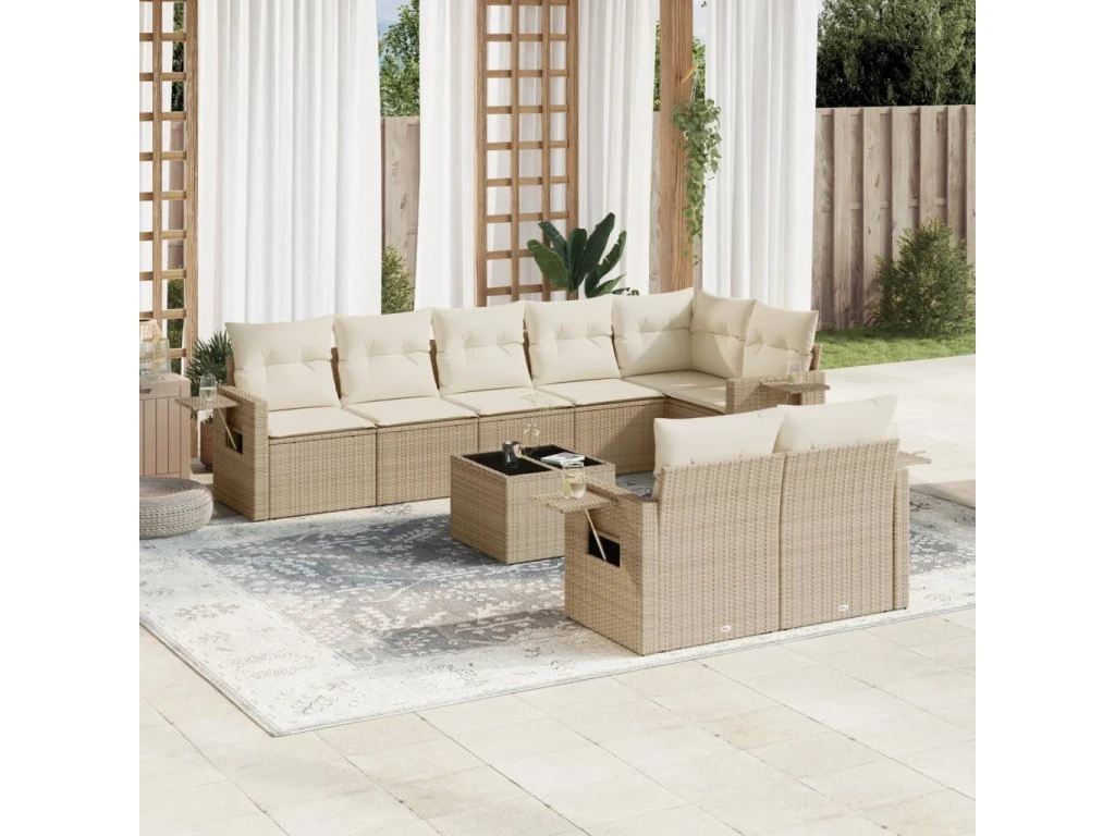 9dílná zahradní sedací souprava s poduškami béžová polyratan 3252765