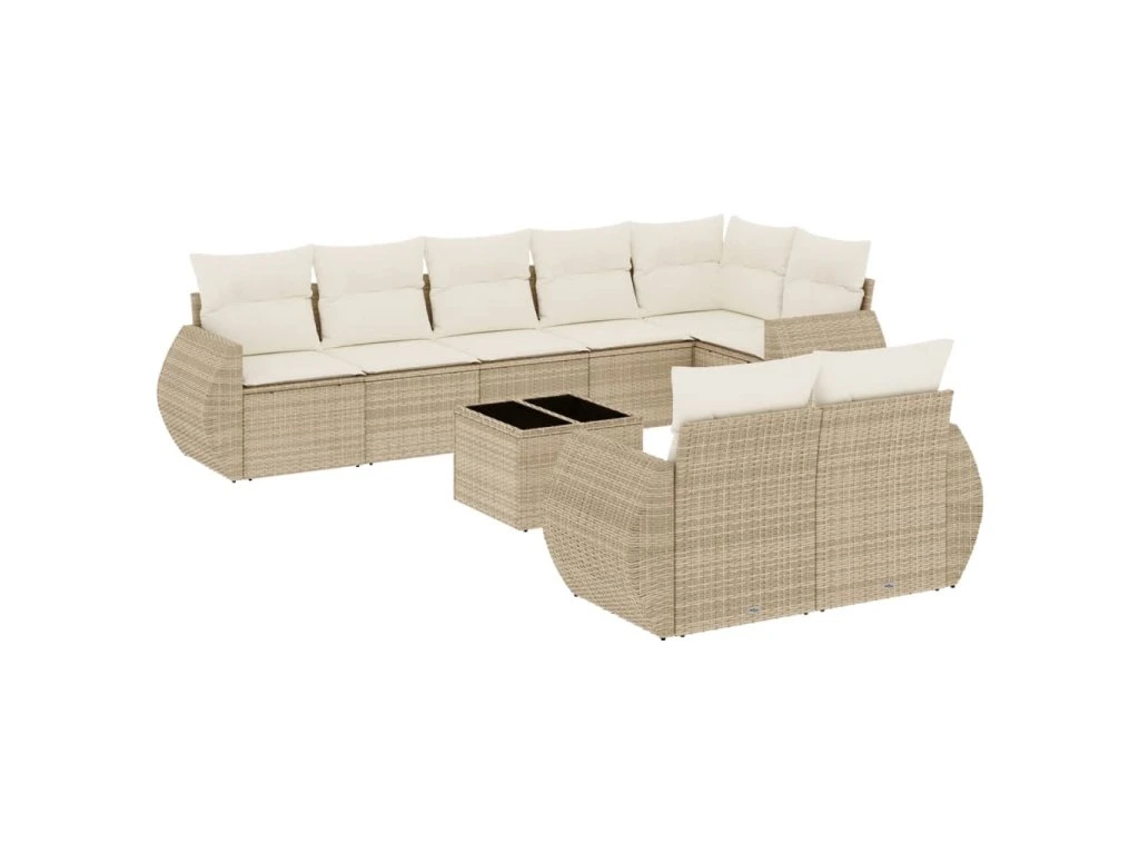 9dílná zahradní sedací souprava s poduškami béžová polyratan 3253965