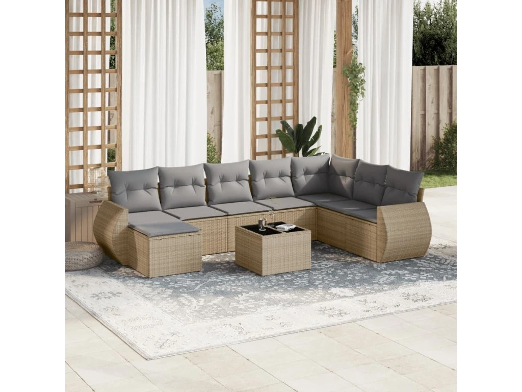9dílná zahradní sedací souprava s poduškami béžová polyratan 3254106
