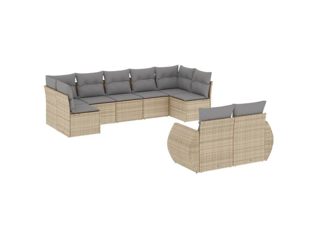 9dílná zahradní sedací souprava s poduškami béžová polyratan 3254156