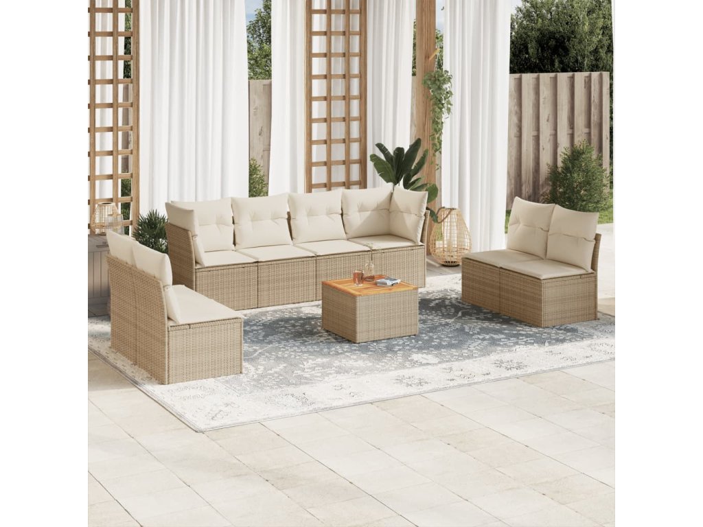 9dílná zahradní sedací souprava s poduškami béžová polyratan 3255911