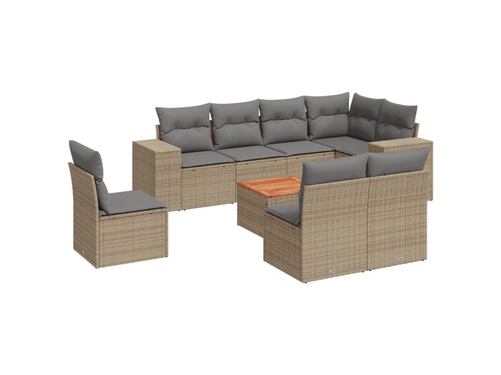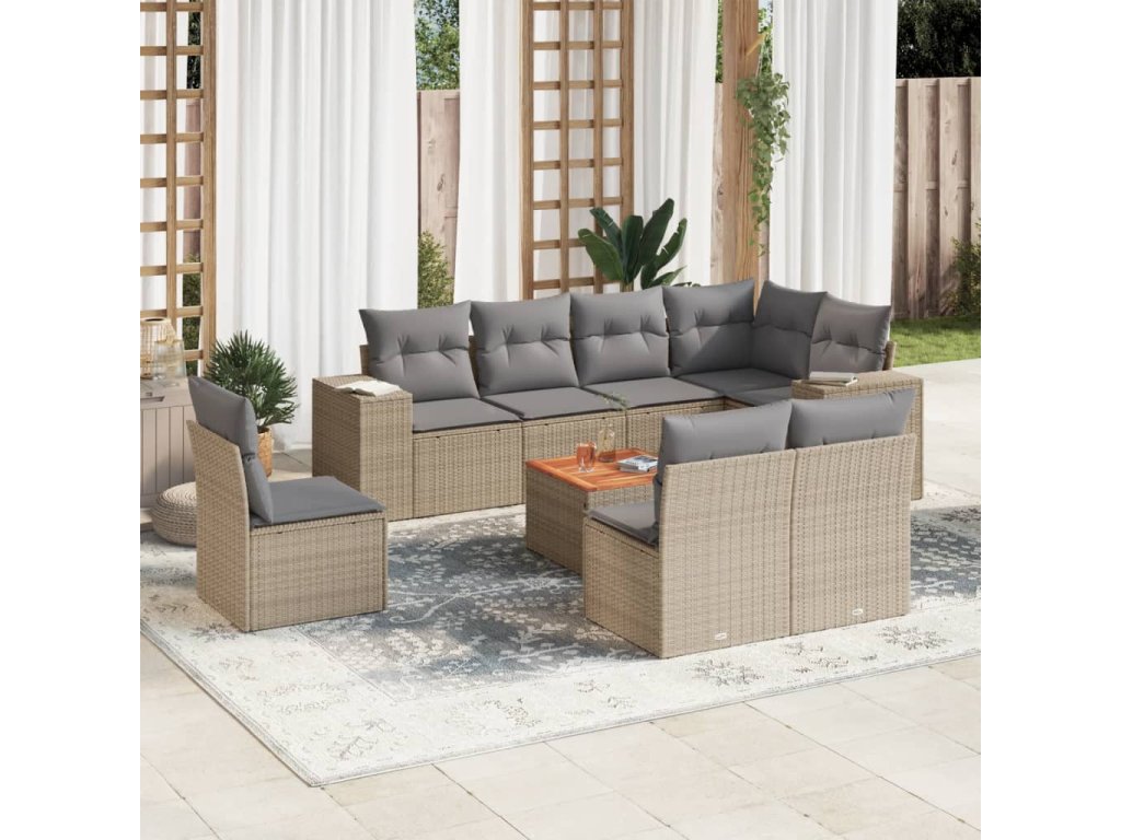 9dílná zahradní sedací souprava s poduškami béžová polyratan 3257816
