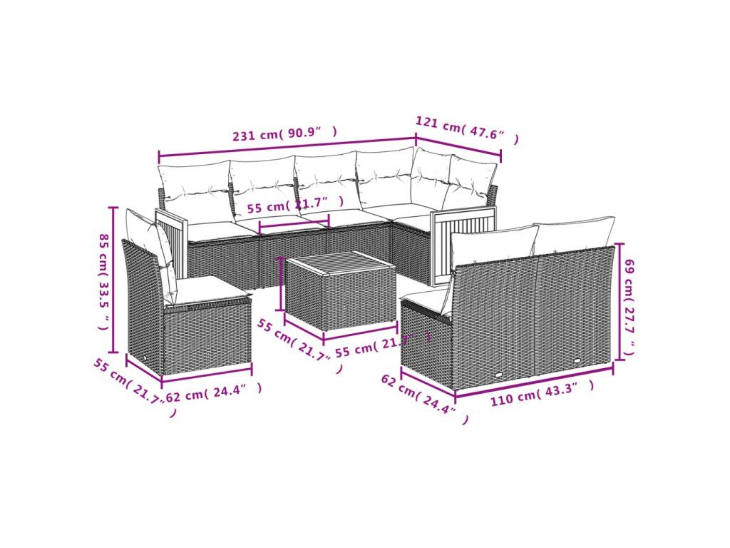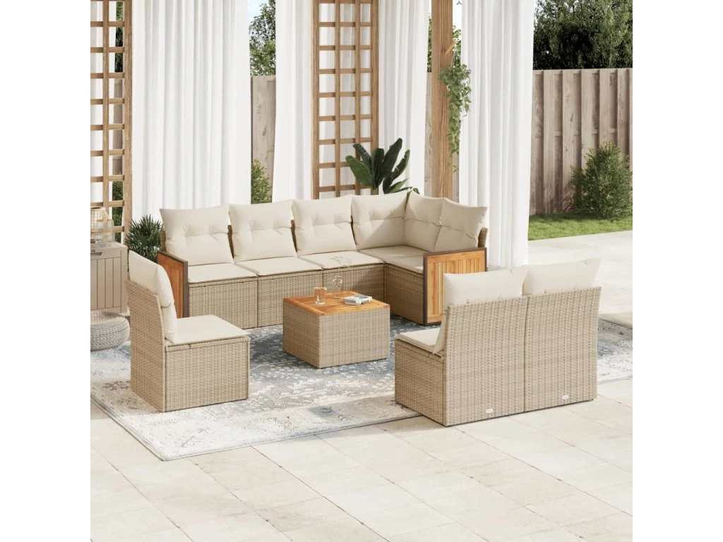 9dílná zahradní sedací souprava s poduškami béžová polyratan 3260133