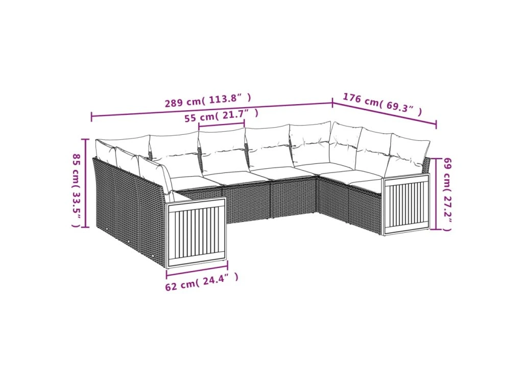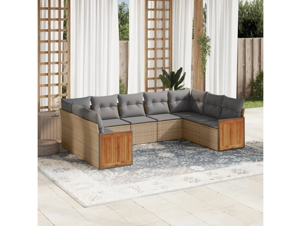 9dílná zahradní sedací souprava s poduškami béžová polyratan 3260358