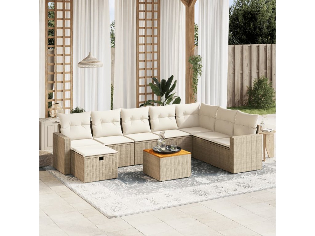 9dílná zahradní sedací souprava s poduškami béžová polyratan 3264873