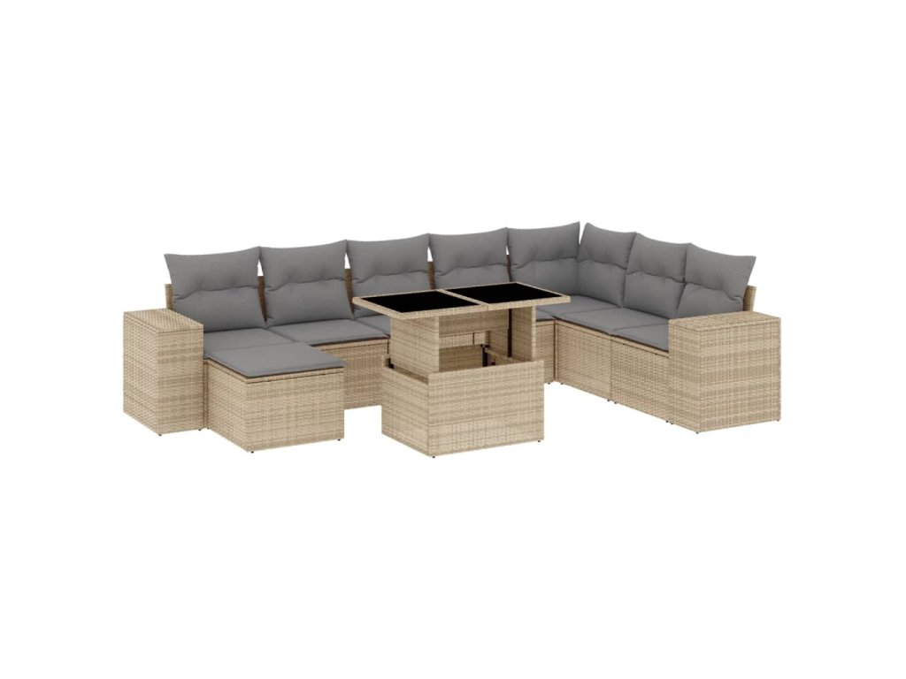 9dílná zahradní sedací souprava s poduškami béžová polyratan 3269359