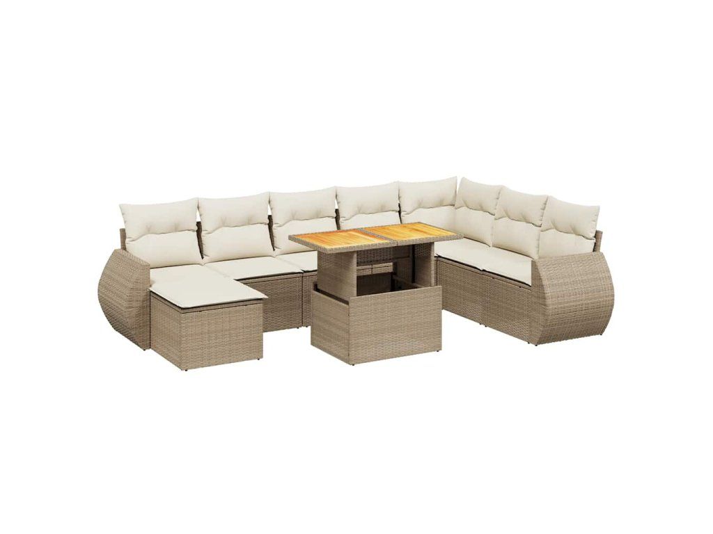 9dílná zahradní sedací souprava s poduškami béžová polyratan 3272332