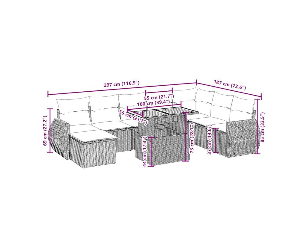 Tato zahradní sedací souprava je dokonalým doplňkem vaší zahrady, terasy nebo dvorku a poskytne vám pohodlné a příjemné místo, kde si můžete povídat s rodinou a přáteli nebo jen tak odpočívat a užívat si pobyt venku.