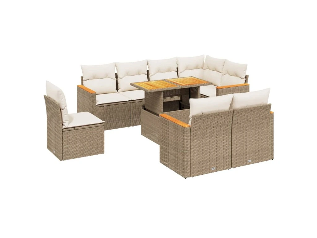 9dílná zahradní sedací souprava s poduškami béžová polyratan 3273172