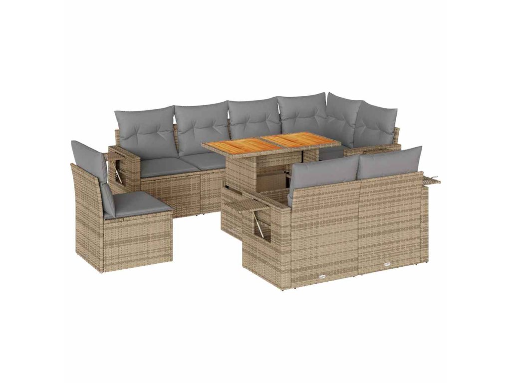 9dílná zahradní sedací souprava s poduškami béžová polyratan 3327167