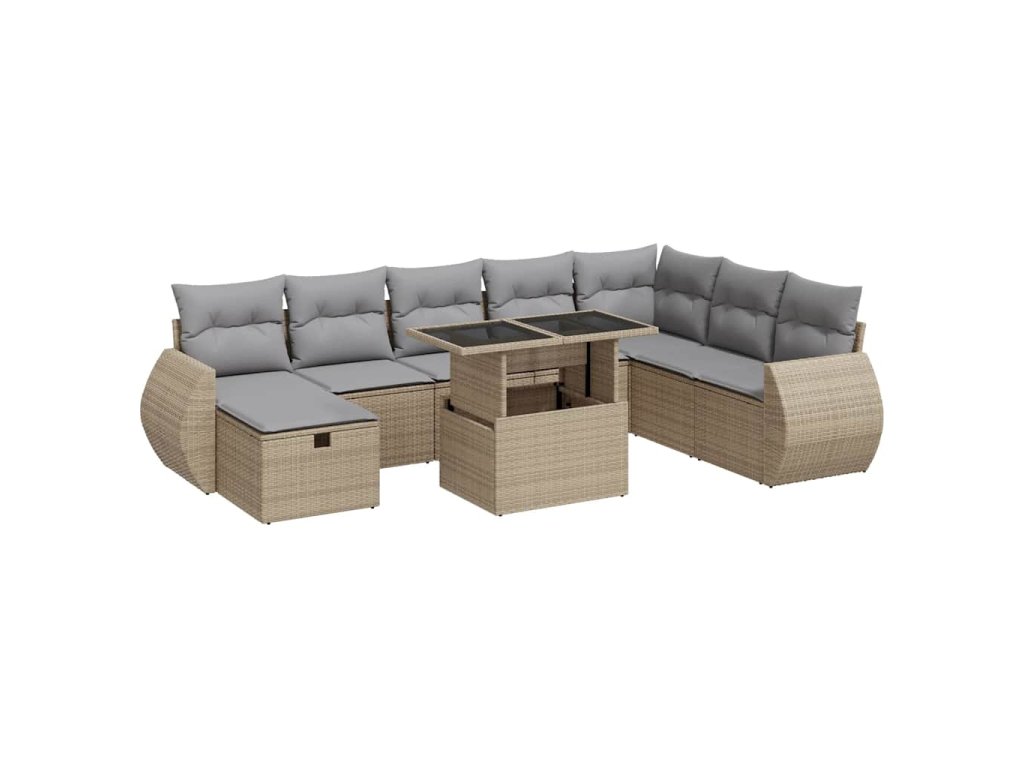 9dílná zahradní sedací souprava s poduškami béžová polyratan 3327919