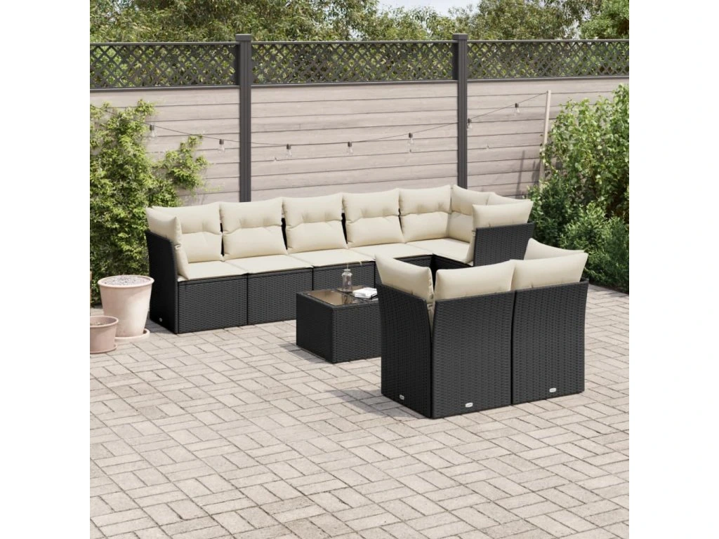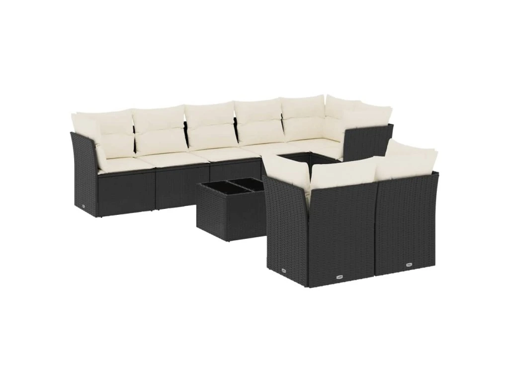 9dílná zahradní sedací souprava s poduškami černá polyratan 3217916