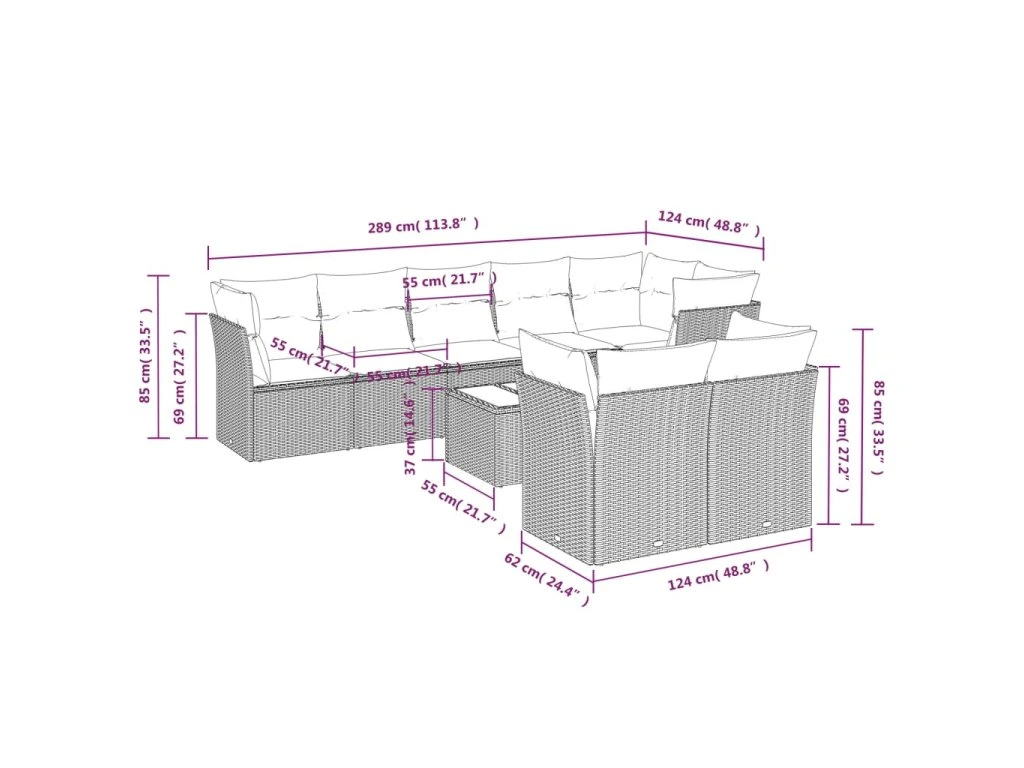 Tato zahradní sedací souprava je dokonalým doplňkem vaší zahrady, terasy nebo dvorku a poskytne vám pohodlné a příjemné místo, kde si můžete povídat s rodinou a přáteli nebo jen tak odpočívat a užívat si pobyt venku.
