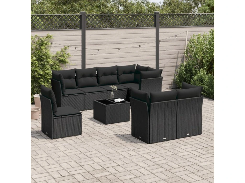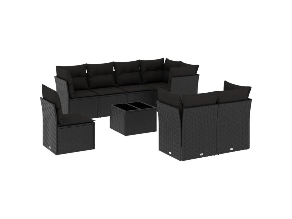 9dílná zahradní sedací souprava s poduškami černá polyratan 3217935