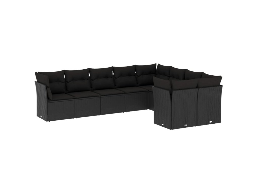 9dílná zahradní sedací souprava s poduškami černá polyratan 3218165