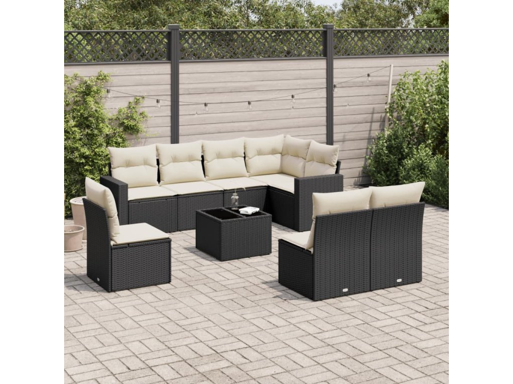 9dílná zahradní sedací souprava s poduškami černá polyratan 3219066