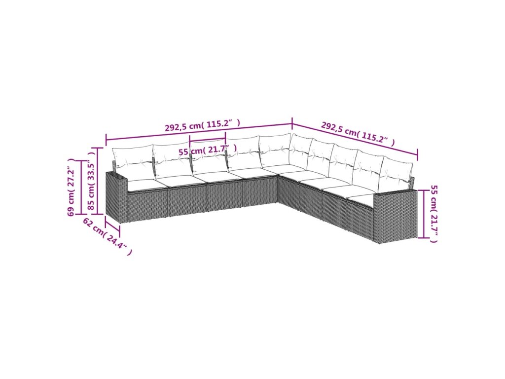 9dílná zahradní sedací souprava s poduškami černá polyratan 3219076