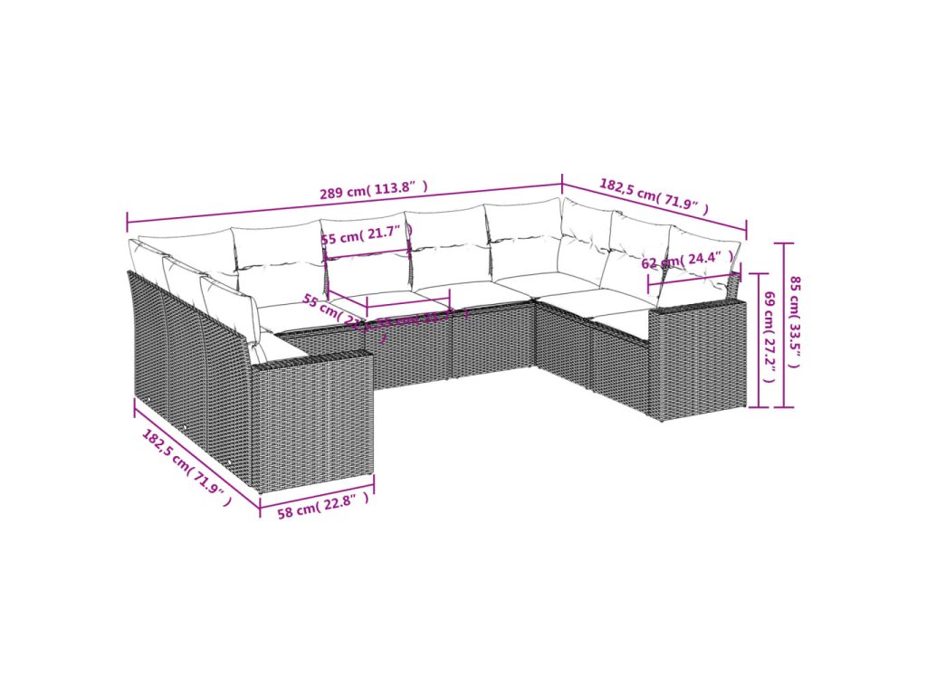 9dílná zahradní sedací souprava s poduškami černá polyratan 3219386